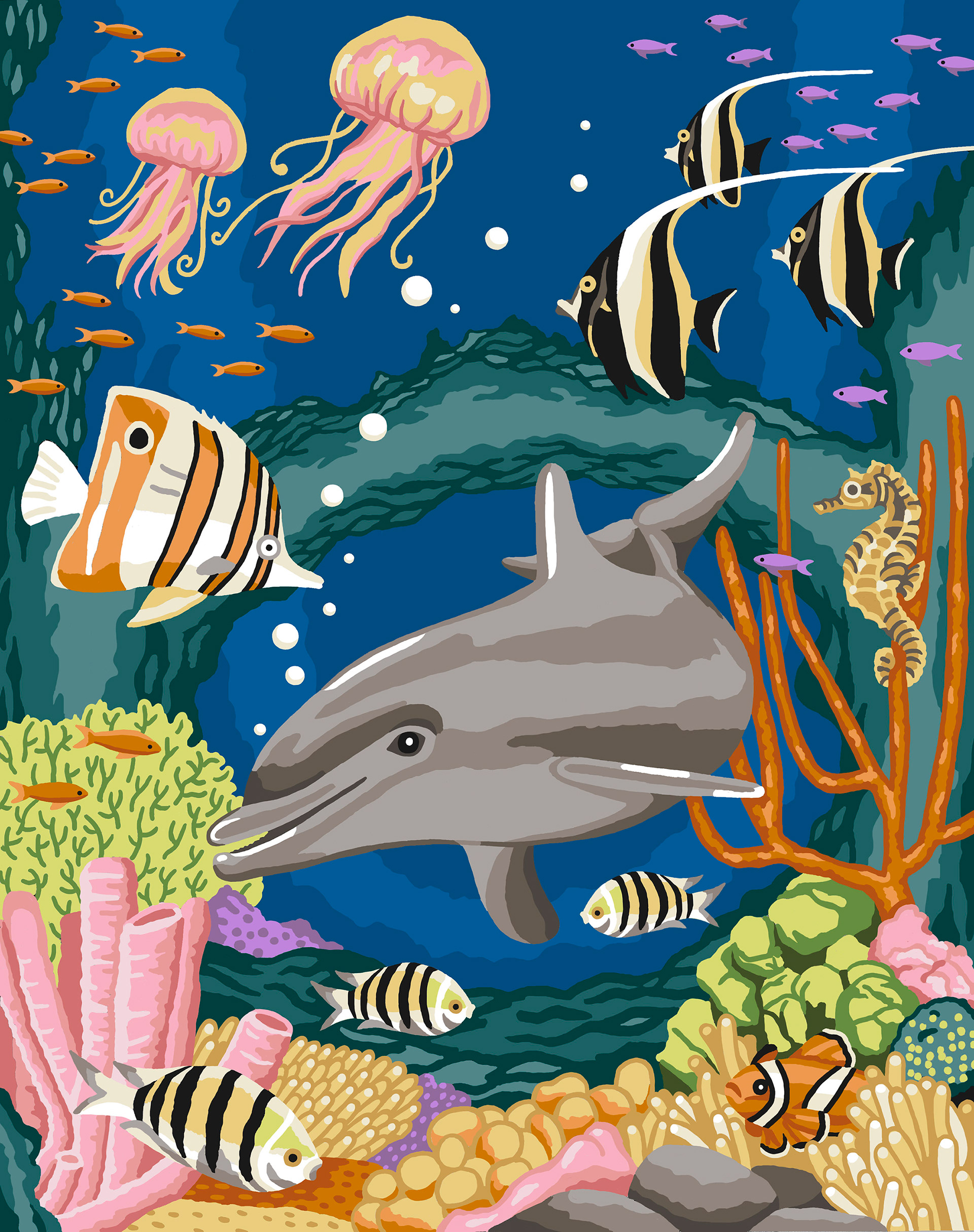 I have designed several paint by number kits for both Craft House and Chartpak. Below are just a few samples. I also create the detailed line drawings with numbers that are used for the printed panels.